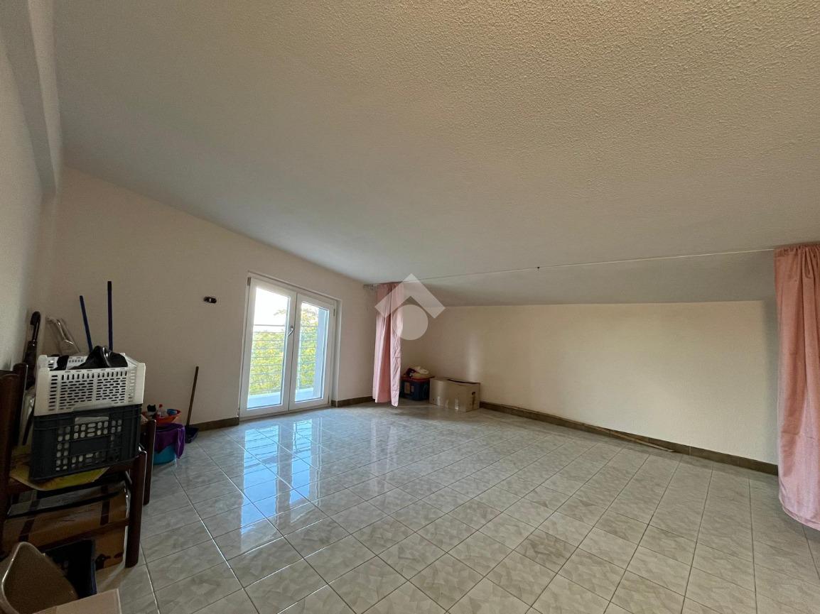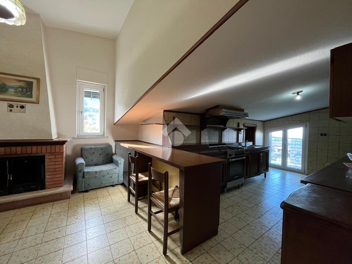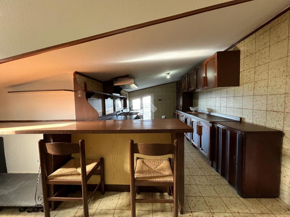 L'immobile mansardato, di 120 mq, è stato rimodernato offrendo spazi funzionali. L'ingresso si apre su un disimpegno, ampio soggiorno, perfetto per momenti di relax. La cucina, dotata di un accogliente camino e di una dispensa, è l'ambiente ideale per cene in famiglia. Completano la proprietà due camere da letto ed un bagno con vasca.